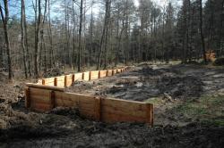 - Zabudowę szlaków zrywkowych, która ma na celu ograniczenie nadmiernego spływu powierzchniowego poprzez zabezpieczenie odkrytych warstw gleby na szlakach zrywkowych oraz przywrócenie wody warstwom podskórnym gleby leśnej poza szlakami. Celem jest także przeciwdziałanie przedostawaniu się erodowanego materiału i zawiesiny do rzeki Ropa.